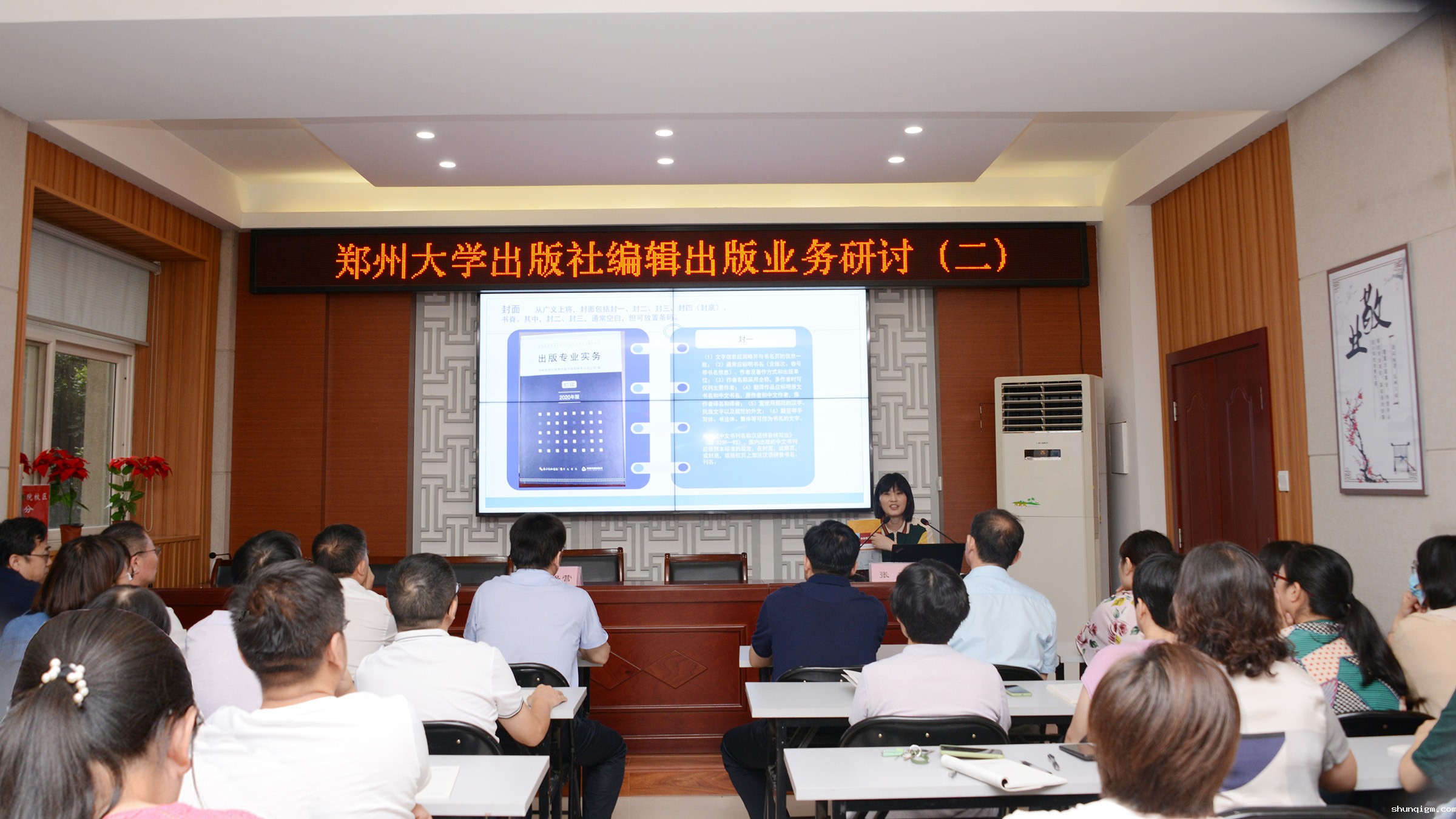 会上,审读质检中心质检员张华同志结合工作实际,以“图书书名页(封面)、书脊、在版编目数据相关规范及注意事项”为题,重点梳理了图书书名页(封面)、图书书脊规则、图书在版编目数据、汉语拼音正词法基本规则等国家标准规范,结合国家级出版社的优秀图书和一部分我社出版的图书,引用大量案例,为大家讲述了图书编校过程中书名、书脊、汉语拼音、在版编目数据等方面的规范范式,并对易漏易错等相关事项进行了详细说明。