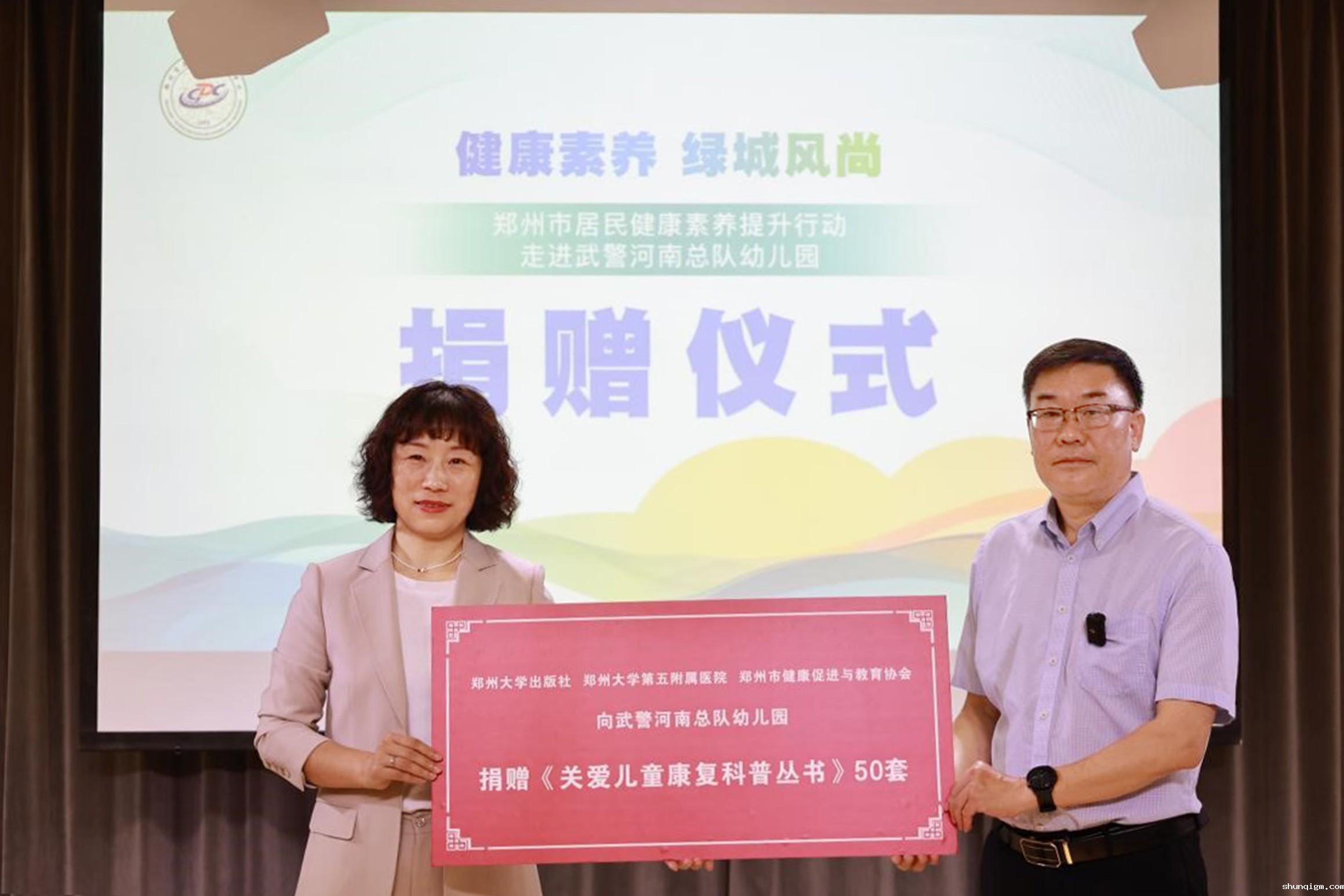 赵秋民在致辞中简要介绍了milan米兰体育app的基本情况、发展成绩及出版特色。他表示,儿童健康教育对儿童未来发展发挥着至关重要的作用,郑大出版社和丛书总主编汤有才教授积极响应郑州市居民健康素养提升行动的号召,向武警河南总队幼儿园捐赠“关爱儿童康复科普丛书”50套,通过共享资源,旨在提升家长与老师的健康素养,为孩子营造健康、快乐的成长环境,为郑州市居民健康教育素养行动贡献智慧与力量。