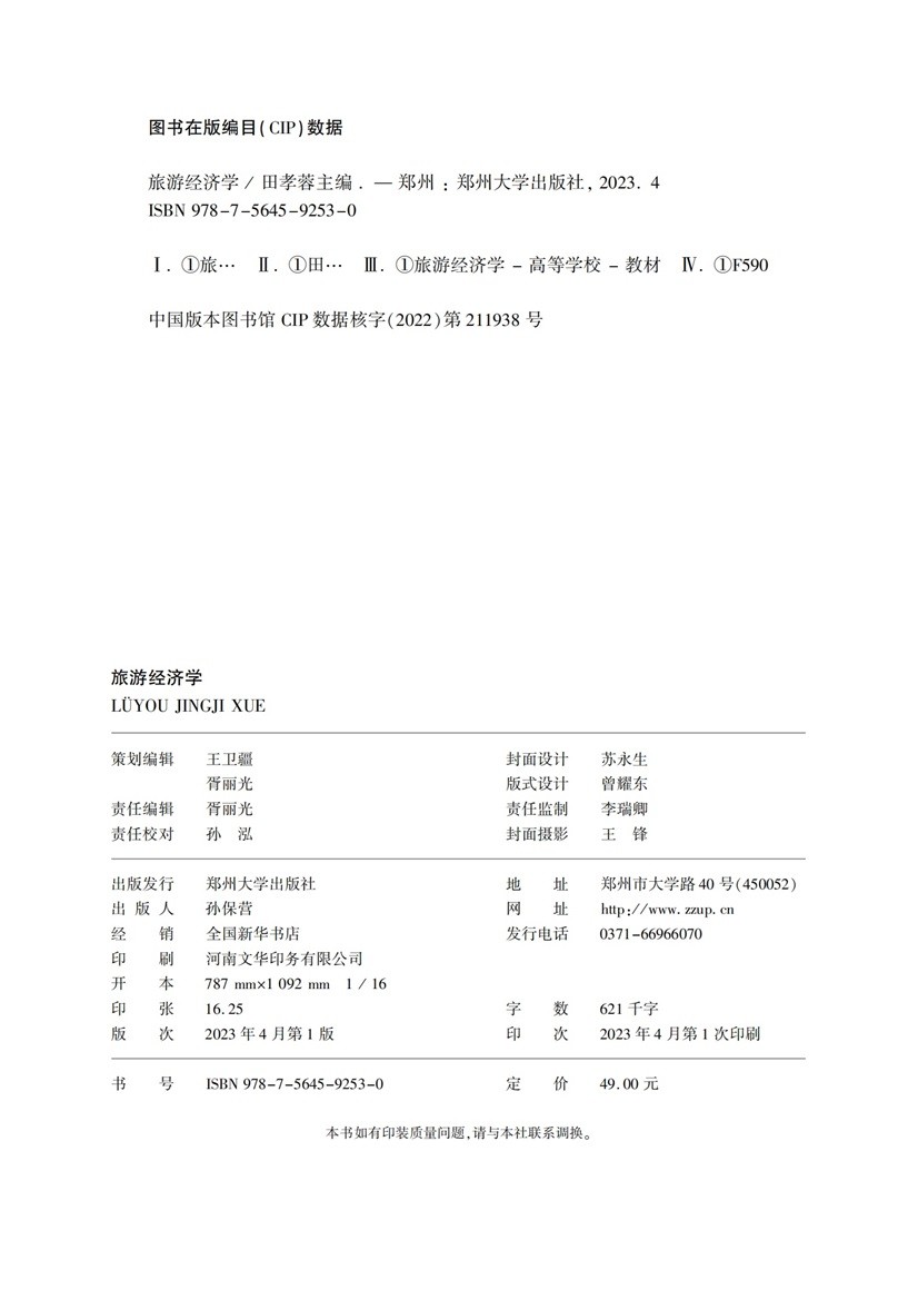 《旅游经济学》课程是普通高等教育旅游管理专业的核心课程。本教材体系科学,层次分明,内容丰富。共十二章,主要内容为: 绪论、旅游产品、旅游需求与旅游供给、旅游价格、旅游消费、旅游收入与分配、旅游经济效益与评价、旅游投资与决策、旅游企业、旅游经济结构、政府对旅游经济的管理、旅游经济发展模式和发展战略。本教材的体系设置是:课前有学习目标和学习难点,课后有小结、章节训练和推荐阅读。章节训练包括概念、思考题和案例分析。