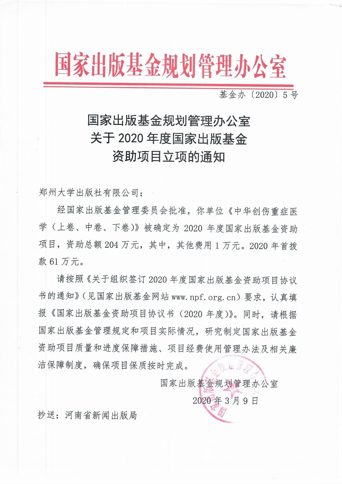 《中华创伤重症医学(上卷、中卷、下卷)》立项通知