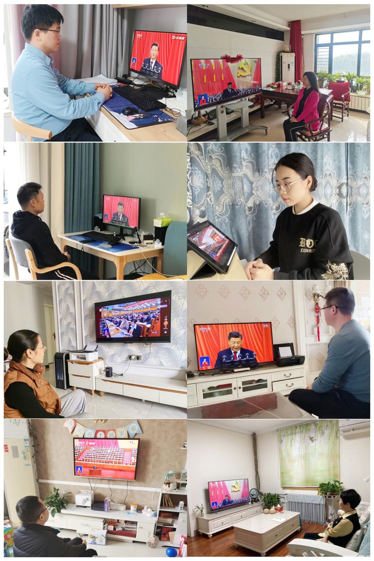 各支部党员在家收听收看党的二十大