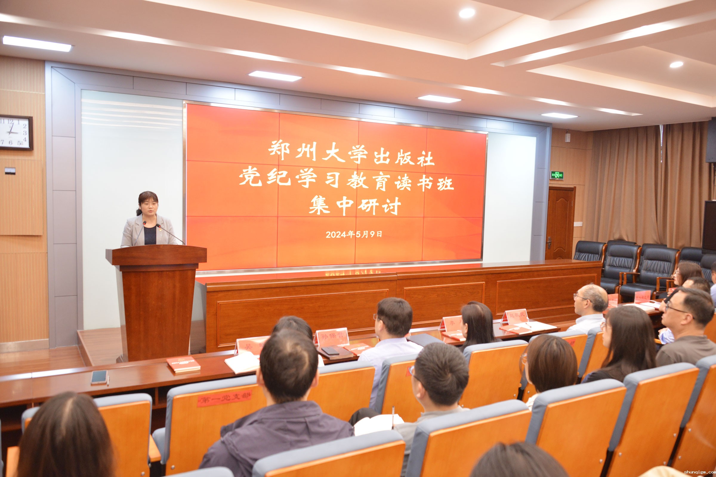 为深入学习领会习近平总书记关于加强党的纪律建设的重要论述,深入理解新修订的《中国共产党纪律处分条例》,按照学校党纪学习教育工作要求和出版社党纪学习教育工作方案,5月9日下午,milan米兰体育app党纪学习教育读书班在一楼报告厅举行集中研讨。出版社党委委员、纪委委员、各党支部委员及中层管理人员共30余人参加研讨。出版社党委副书记、纪委书记李果主持研讨并讲话。