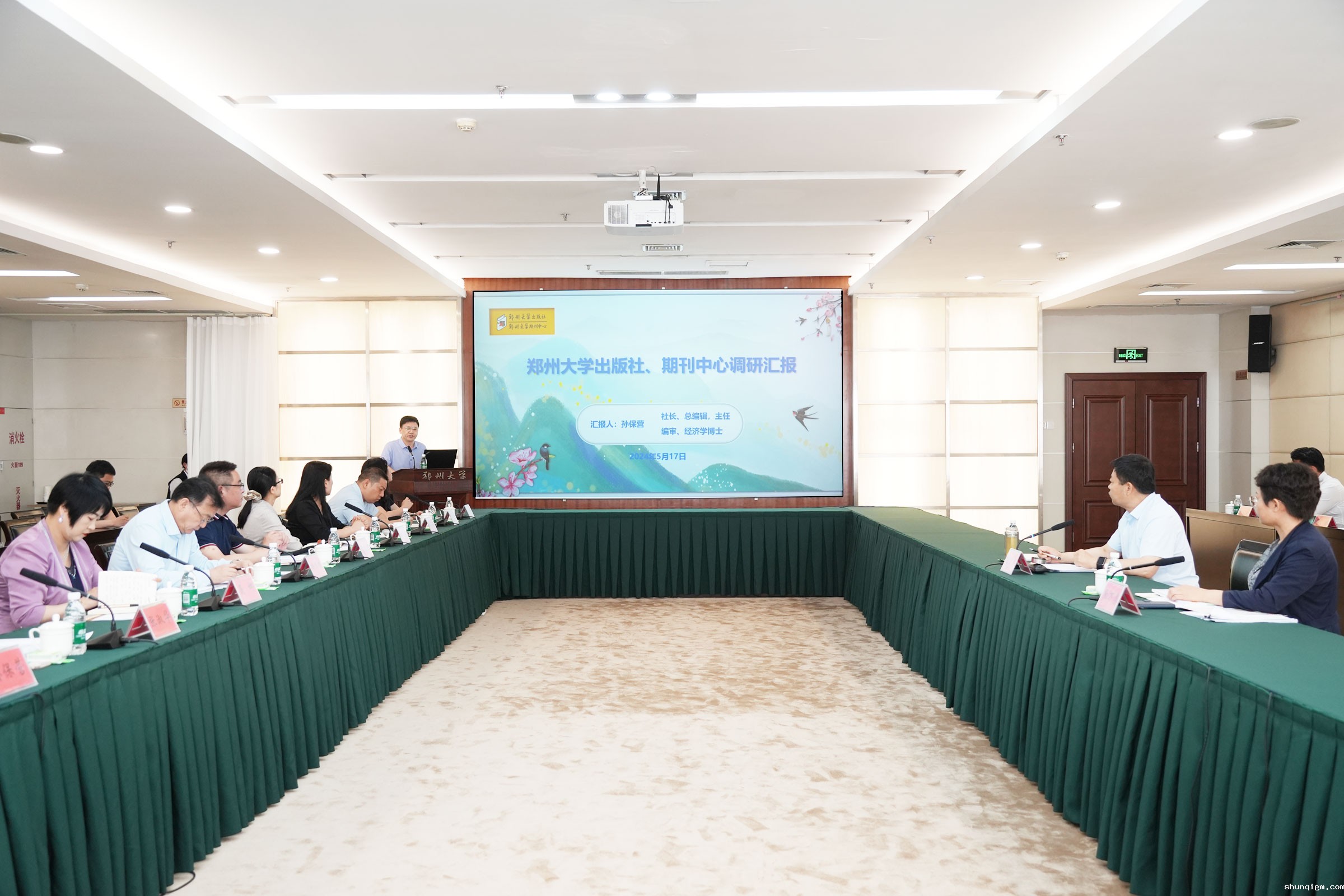 为深入学习贯彻习近平文化思想,创新出版专业人才培养模式,推动郑州大学出版学科和出版机构高质量发展,5月17日,河南省委宣传部副部长贾宏宇等一行4人来郑州大学调研出版工作。郑州大学党委副书记、工会主席韩国河,党政综合办公室副主任党敬川,党委宣传部副部长聂娜,学报编辑部主任郑素侠,新闻与传播学院正处级组织员、副院长(主持工作)张淑华,出版社党委书记杨雪冰,出版社社长、总编辑、米兰体育app官网下载手机版安卓主任孙保营等出席会议。学报编辑部、新闻与传播学院、出版社(米兰体育app官网下载手机版安卓)等单位部分负责同志参加会议。