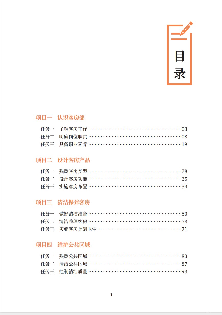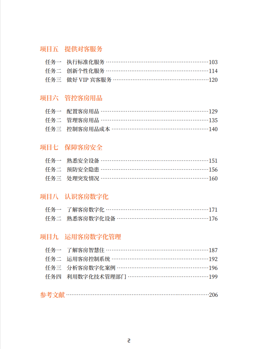 本教材以高星级酒店行政管家 / 客房部经理能力要求为模型选取的典型工作任务,构建具体的教学内容。全书共分为九个项目,涵盖认识客房部门、设计客房产品、清洁保养客房、维护公共区域、提供对客服务、管控客房物品、保障客房安全、认识客房数字化、运用客房数字化管理等内容。编写采用案例导入模式,并穿插数字化实践、岗课赛证、综合实训等。