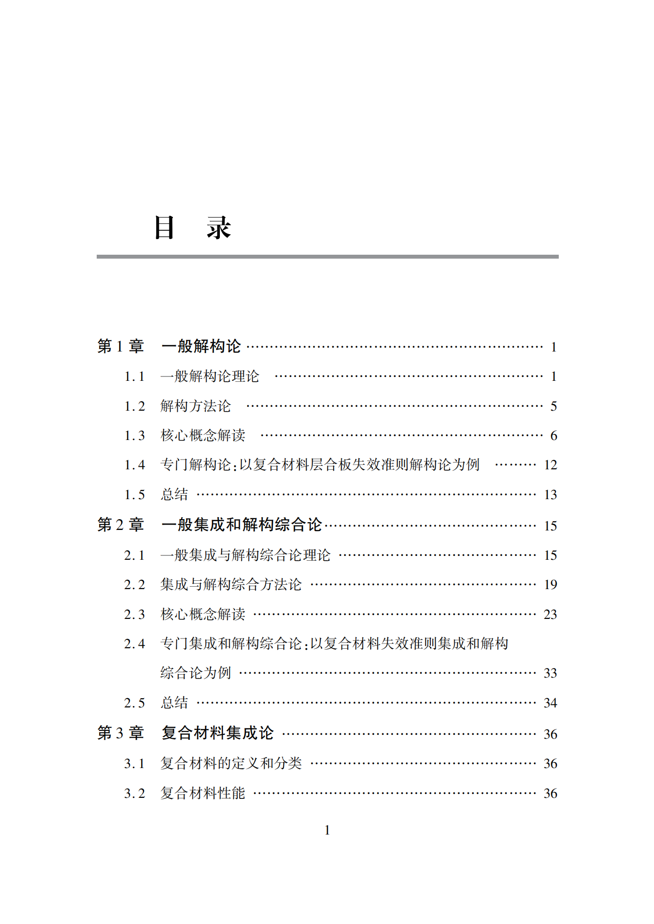 本书首先介绍了一般解构论与一般集成和解构综合论两个理论。其次,针对复合材料,提出了复合材料集成论、复合材料解构论、复合材料力学集成论、复合材料及其力学集成和解构综合论、复合材料损伤模型集成和解构综合论。随后,基于一般集成论和一般解构论,提出了新的复合材料层合板失效准则、基于场变量的多次加载集成论。同时,给出了不同复合材料层合板力学模型的基本假设综述。最后,在经济学领域,提出整合理论与分工和整合综合理论;在现代科学技术体系领域,提出航天科学。