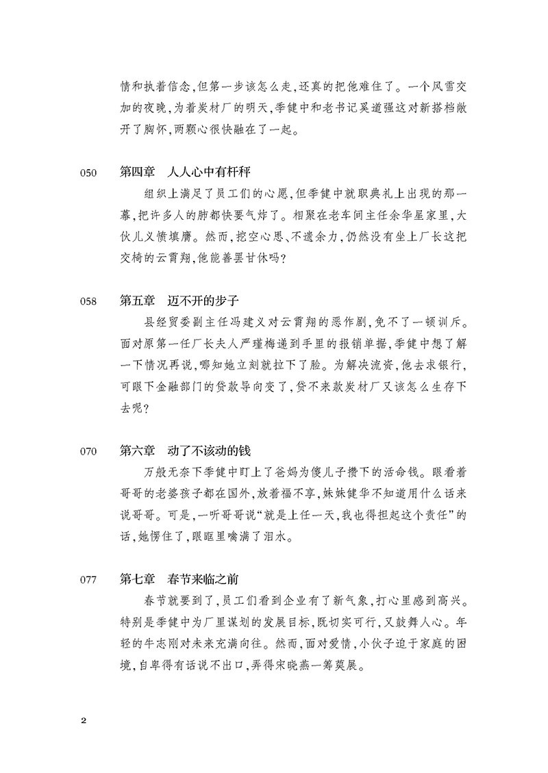 作者作为地方中小企业发展历程的亲历者,立足于广阔的现实社会背景,以平凡的语言塑造了像季健中这样有担当的管理者与改革者的形象,集中展现了从事实体经济的人们对民族工业的振兴所作出的不懈努力。小说不仅表现了创业者血浓于水的家国情怀,而且赞美了夫妻爱情、同志亲情和战友真情,热情地讴歌了民族工业发展所取得的令人瞩目的成就。